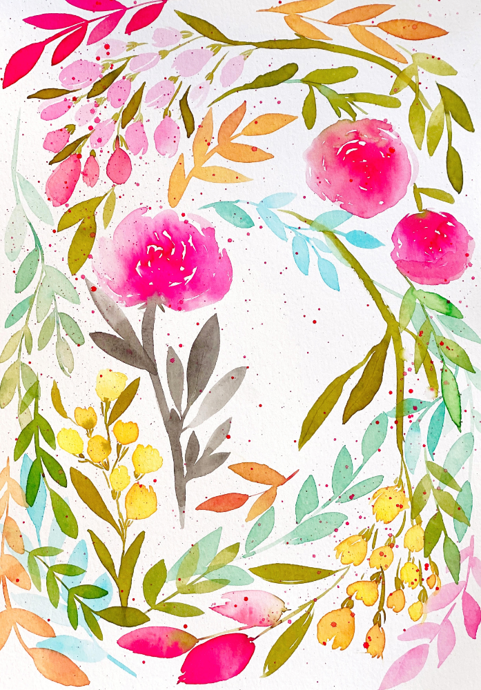 3.מסגרת מצוירת: נלמד לצייר עלים גדולים ולעבוד בשכבות וליצור מסגרת יפיפיה.